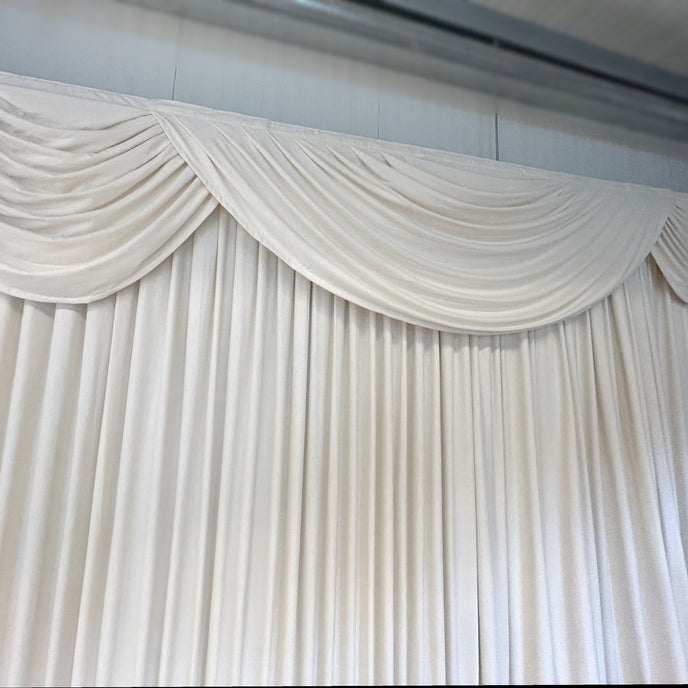 The soffit usually consists of stage felt hemmed all around with sewn-on ties at the top edge.